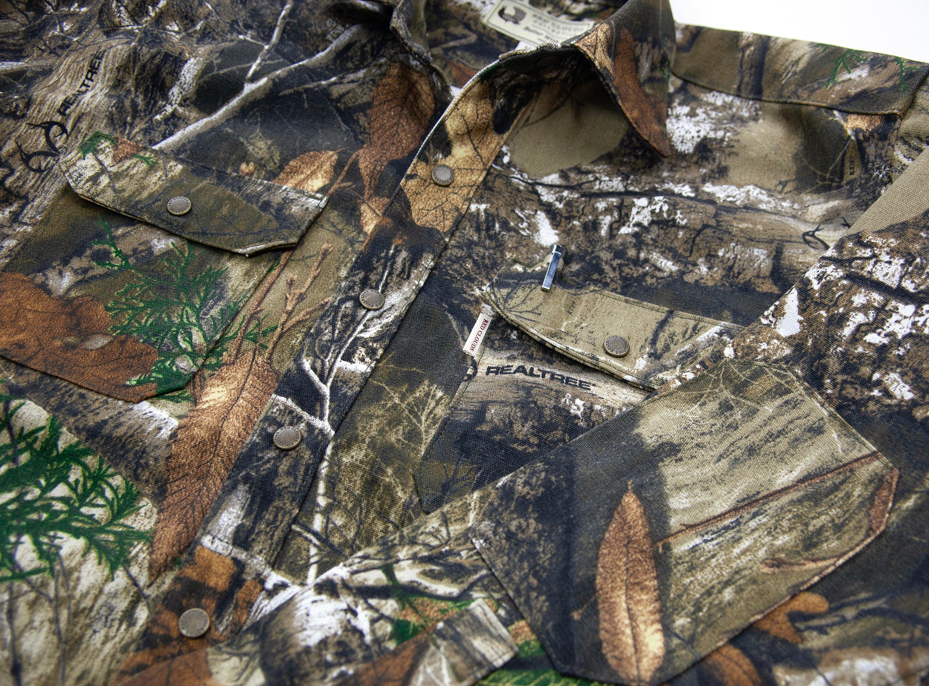 Crafted with durable and rugged 12oz Realtree Edge camo. Reinforced elbows and custom YKK antique brass snaps.